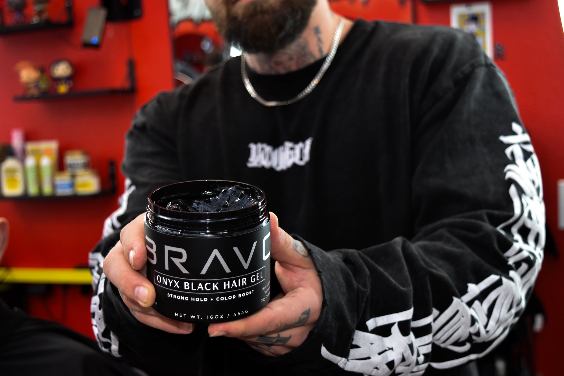 Bravo Hair Gel, formulated with premium ingredients & crafted with precision by professionals. Our hair gel offers a firm hold that lasts all day. Whether you're aiming for a sleek, sophisticated look or a more relaxed, tousled style, Bravo Hair Gel delivers exceptional results without alcohol flaking or residue. Additionally, Bravo Hair Gel features a subtle black tint, perfect for enhancing dark hair tones and helping to temporarily blend grey and white hairs, providing a polished, deep finish.